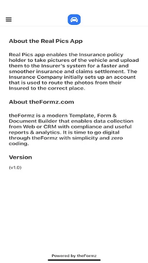 The Palm Insure Real Pics app for automating the taking of photos of vehicles required for policy issuance