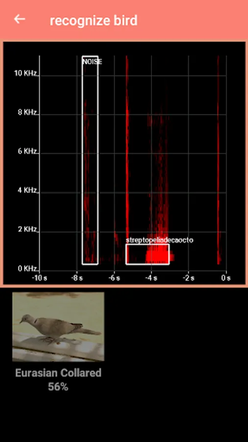 The recognition function uses the microphone of your mobile phone and presents you with a probability of identification. The algorithm is not perfect and can give overvalued probabilities (in particular a 100% probability should not be considered as exact).