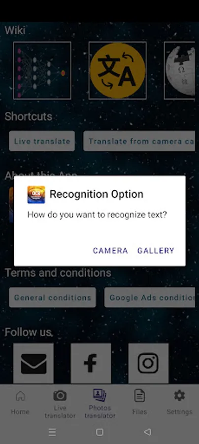 You can use the "live" translator or just take a picture of the text to get the written and audio translation in your native language.