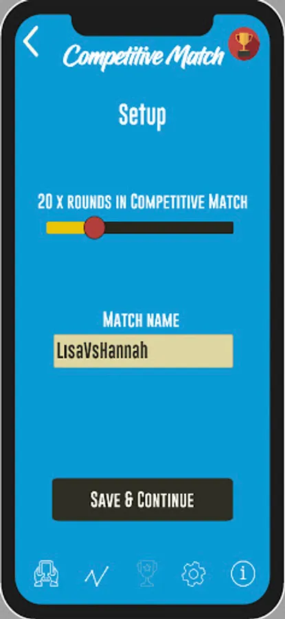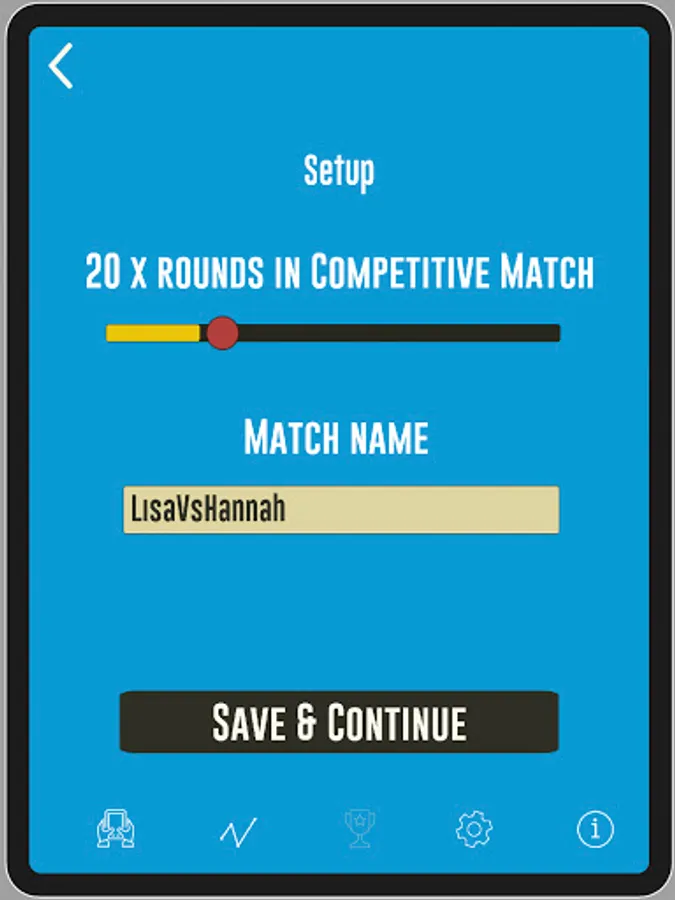 - Play "Competition" mode with matches between 5 - 100 rounds over time