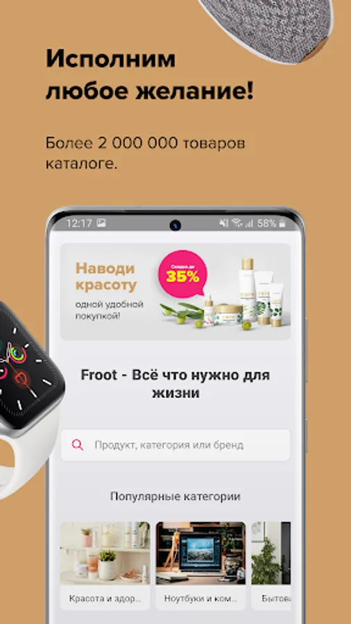 The Froot.kz marketplace sells everything for life. From food and household chemicals to smart appliances, clothing, furniture, cosmetics and work tools. With Froot.kz, you will always find great prices, fast delivery and friendly service.