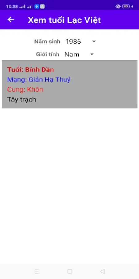 - View web (Kim Moc Thuy Hoa Tho) this is a bit different from other apps a little bit due to using Lac Thu Hoa Giap (Change Thuy - Fire)