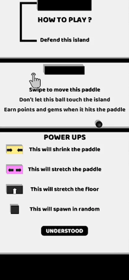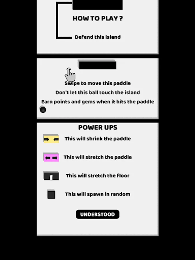 Use the paddle to swipe across the screen to defend the ball that's destined to hit the island on the top.