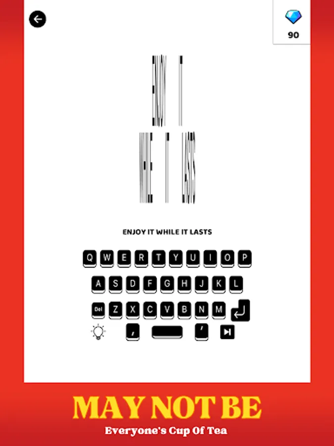Hints: Use hints to reveal one letter at a time, aiding you in solving the puzzle.