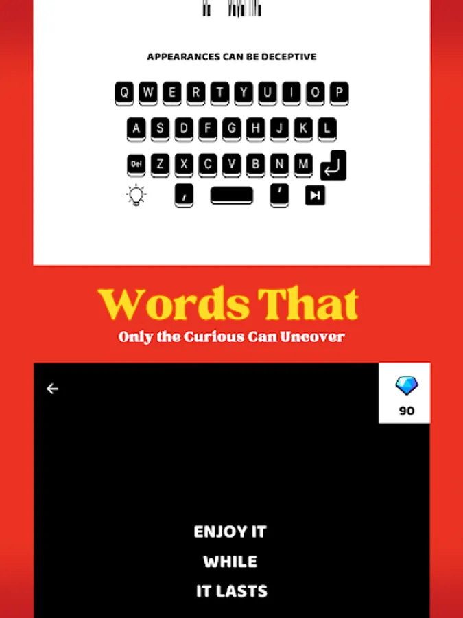 Embark on a word adventure like no other! 'Stretch Text: Find Proverb' challenges your perception and word skills in a captivating twist on word puzzles. In this unique game, words are stretched and concealed, waiting for your keen eye to reveal their secrets.