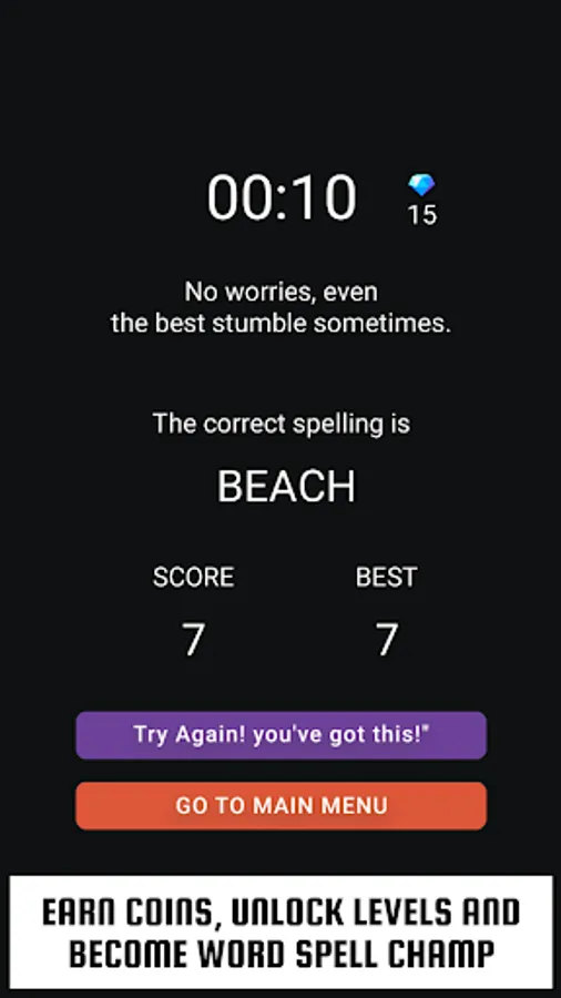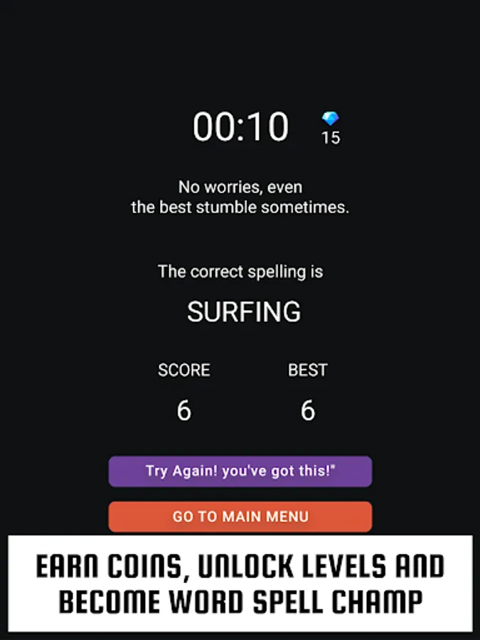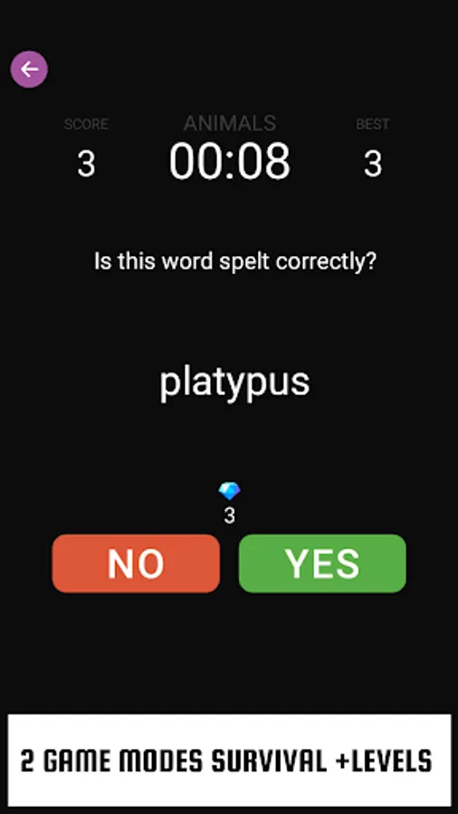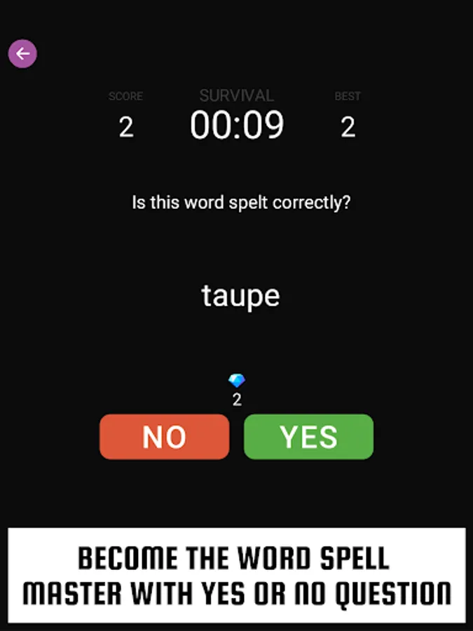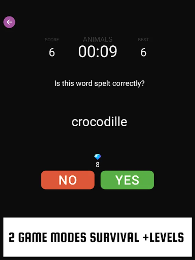 ⏳ Survival Mode: Brace yourself for a heart-pounding test of your spelling skills. With a mere 10 seconds on the clock, make rapid-fire decisions on word spellings. As you progress with each correct response, the intensity grows, pushing your limits in an exhilarating battle of wits.