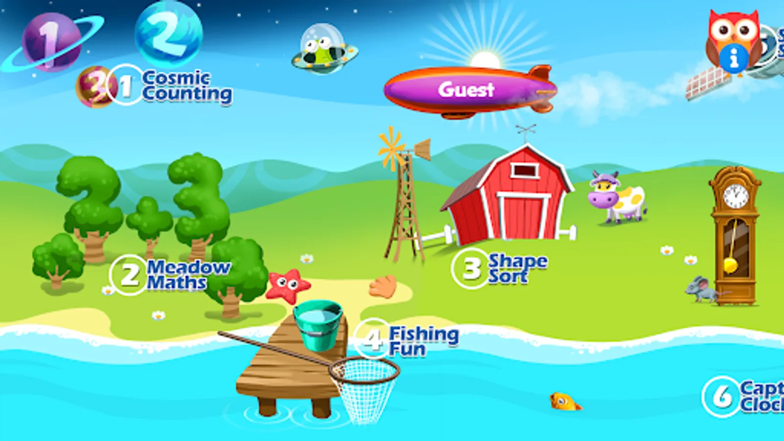 EduGuru Maths gives children a fun-learning jumpstart on the formal maths teaching that starts in school and compliments the simple math skills that parents can introduce through their daily routines. The animations are fun and the variety of quick activities ensure children will be entertained while learning!