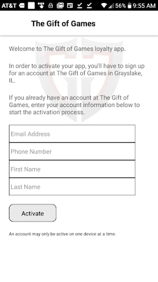 You must have an account registered with the Gift of Games retail store in order to access the functionality of this app. If you are not currently a customer with the Gift of Games, please contact staff@thegiftofgames.com or call 847-752-8812 to get set up.