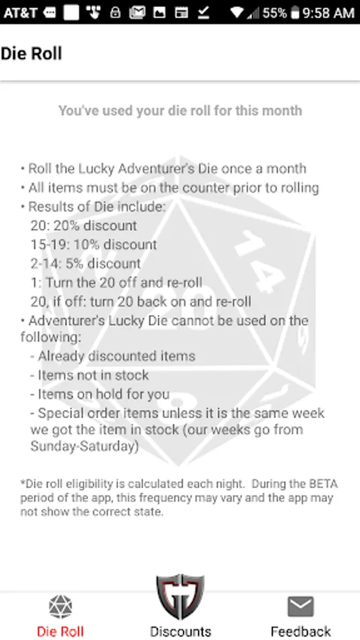 Once registered you’ll have access to in store and web store discounts on games and other products. You may also receive discounts at other local business in the community, based on your membership type. In addition you’ll be able to be notified on the status of your special orders and other special events.
