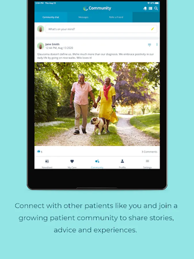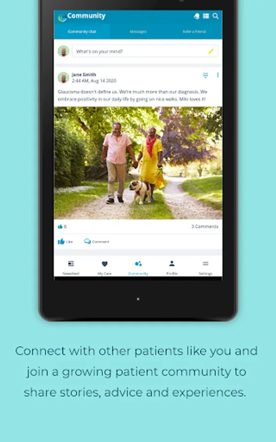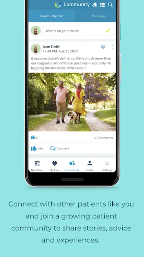 • Connect with other patients like you and join a growing patient community to share stories, advice, and experiences.