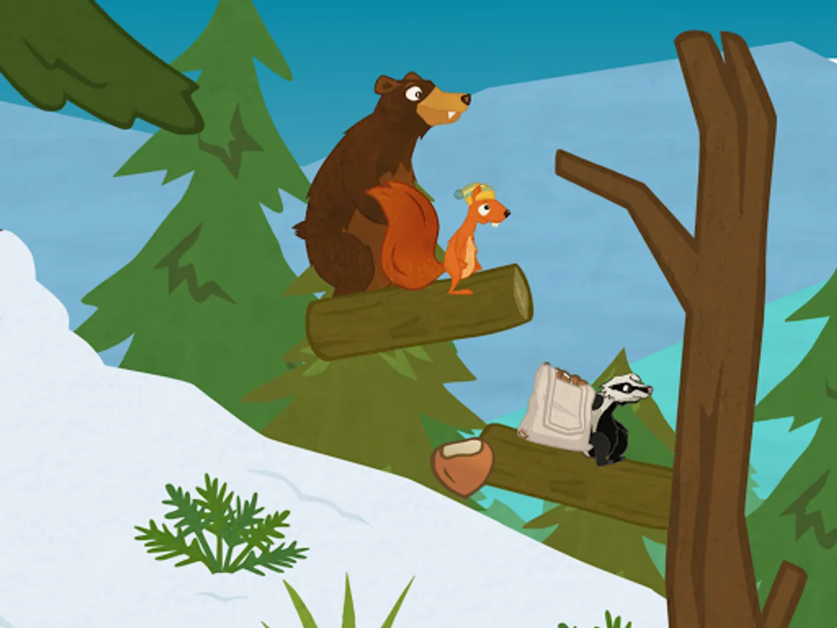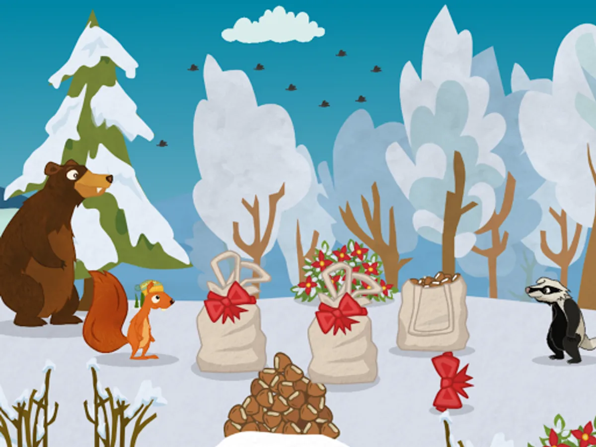 The bear has promised the squirrel to go sledding in winter. After the first snowfall, the Squirrel seeks out the bear to wake him up from his hibernation. You meet the cheeky badger who has a huge bag with him. In this winter adventure, Squirrel & Bear find out what is in the bag and why a festival is always celebrated in winter!