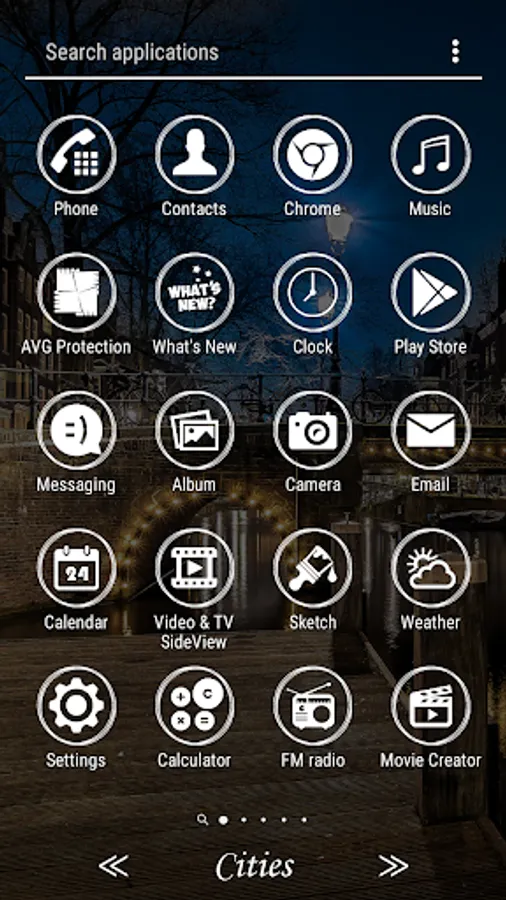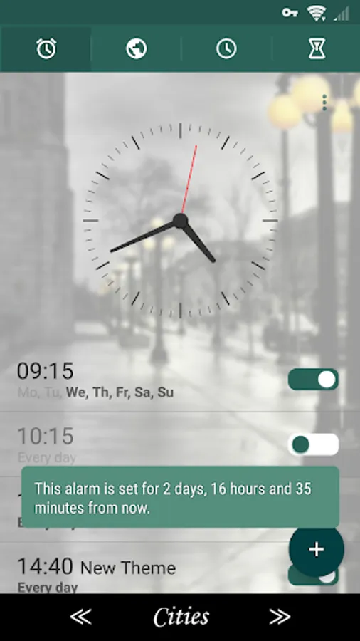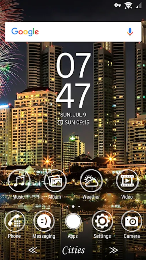 In this theme there are 24 Wallpapers with pictures of cities and they are changing every hour.