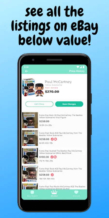 * Save the search to your Wishlist and get instant notifications when that Pop! gets listed on eBay OR when an auction is ending soon and the bids are still below the current value.