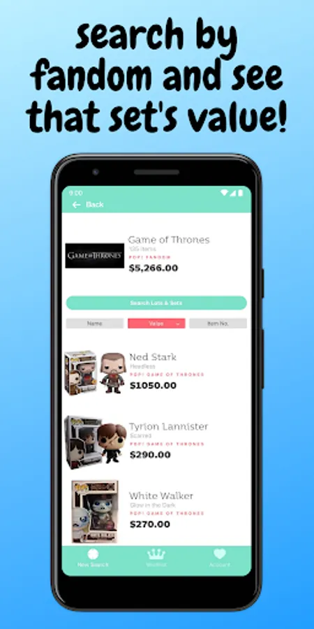 * Simply pick a Funko Pop! you've been searching for and instantly see the price.