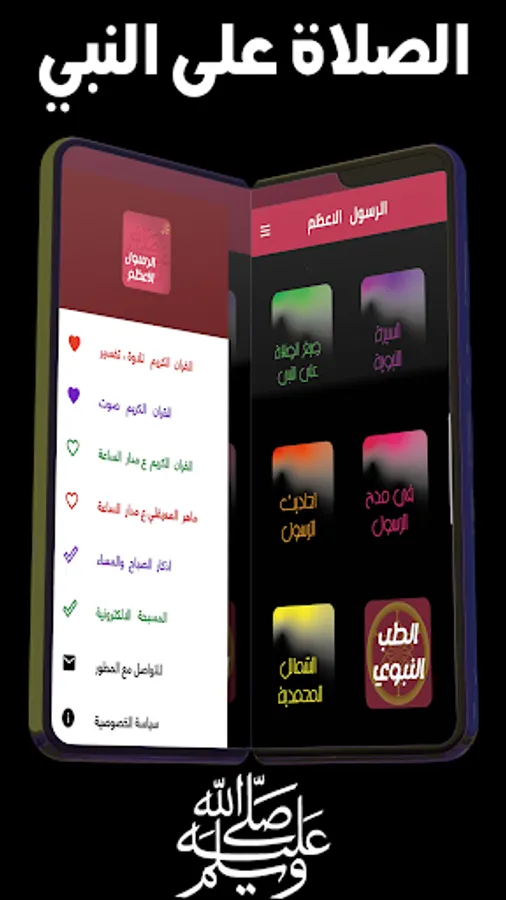 The application of the Greatest Messenger contains a large and renewed number of all formulas and the virtue of prayer on the Prophet contained in the Book and the Sunnah and the importance of preserving it because of its great impact and wonders to relieve worries and distress, God Almighty, with a large number of audio songs and authentic hadiths contained in the Prophetic Sunnah