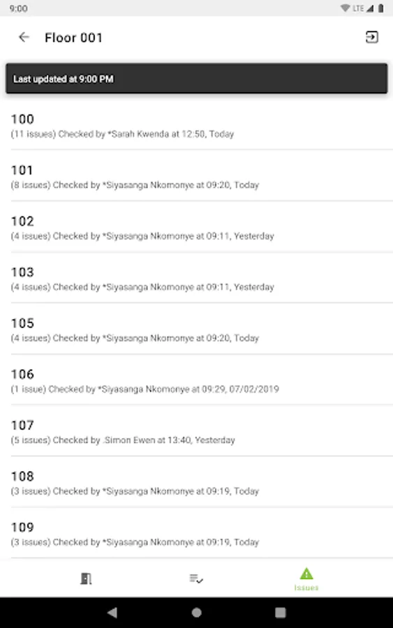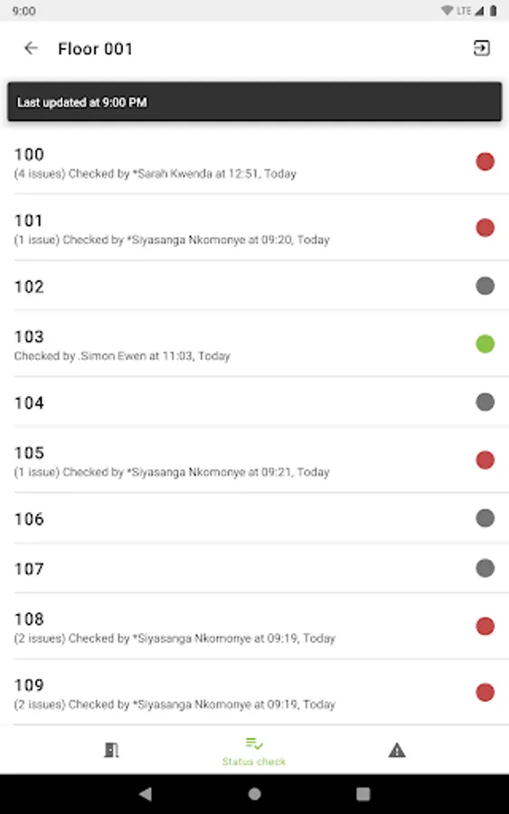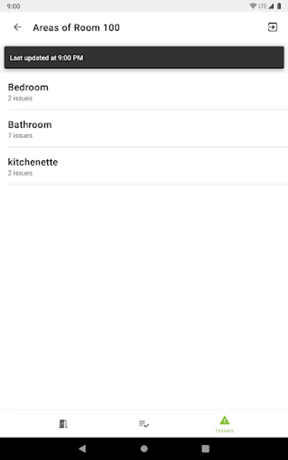 The selection of Yes or No for each checklist item, allows staff to report issues identified, by taking a photograph and commenting before submission. Email notifications according to service type maintenance or housekeeping allow management to have a real-time view of issues reported by staff. In-app and Online viewing of reported issues and room status available in real-time.