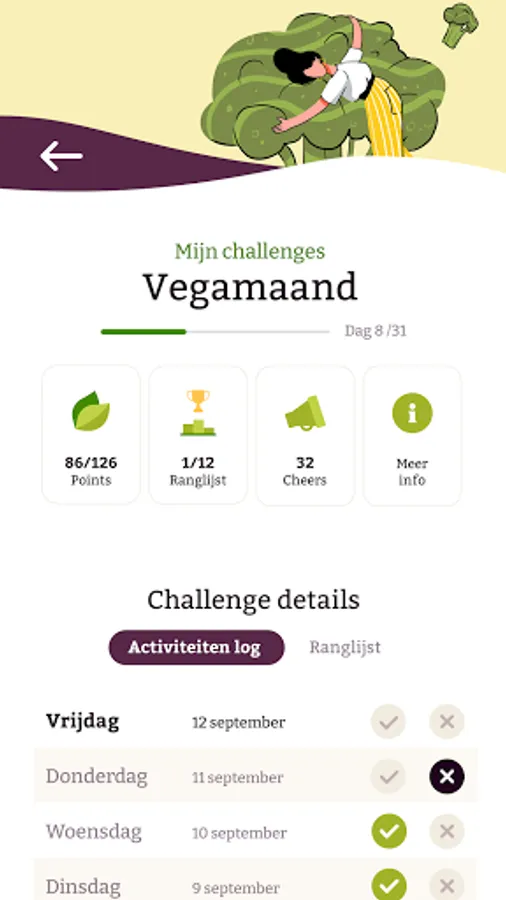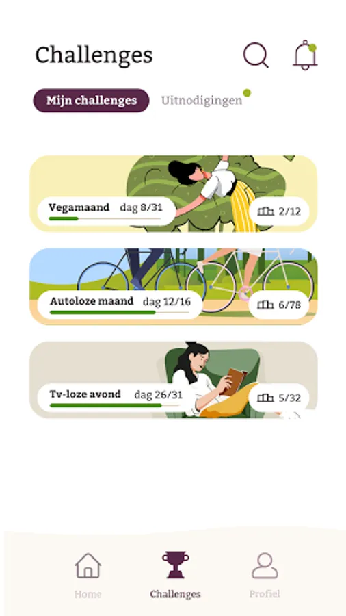 The GreenScout is a sustainable challenges app for organizations. In mutual competitions, colleagues challenge each other or departments for green or healthy challenges. Think of a meat-free month, leaving the car at home or running 10k every week. The scoreboard shows you how you and your colleagues are performing. The more active you are, the better your score.
