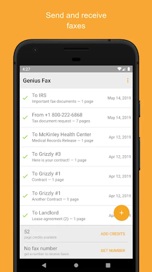 Genius Fax is the easiest way to send and receive faxes from your Android device that stays affordable. It's fast, simple to use and beautiful. No need to go to the dreaded fax store anymore.