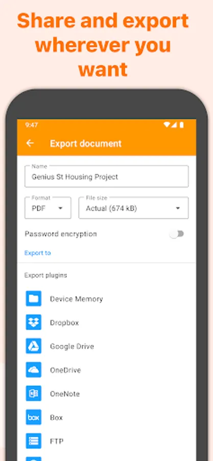 Your scans aren't stuck in your scanner app, you can export them to any other app or services you use.