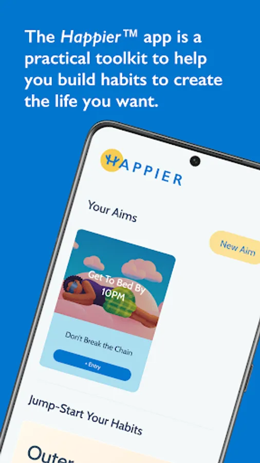 The Happier app is free to download. Track one aim without a subscription to find the habit-change tool that works for you. Subscribe to unlock unlimited aims and get the flexibility to track all the habits that make you happier, healthier, more productive, and more creative.