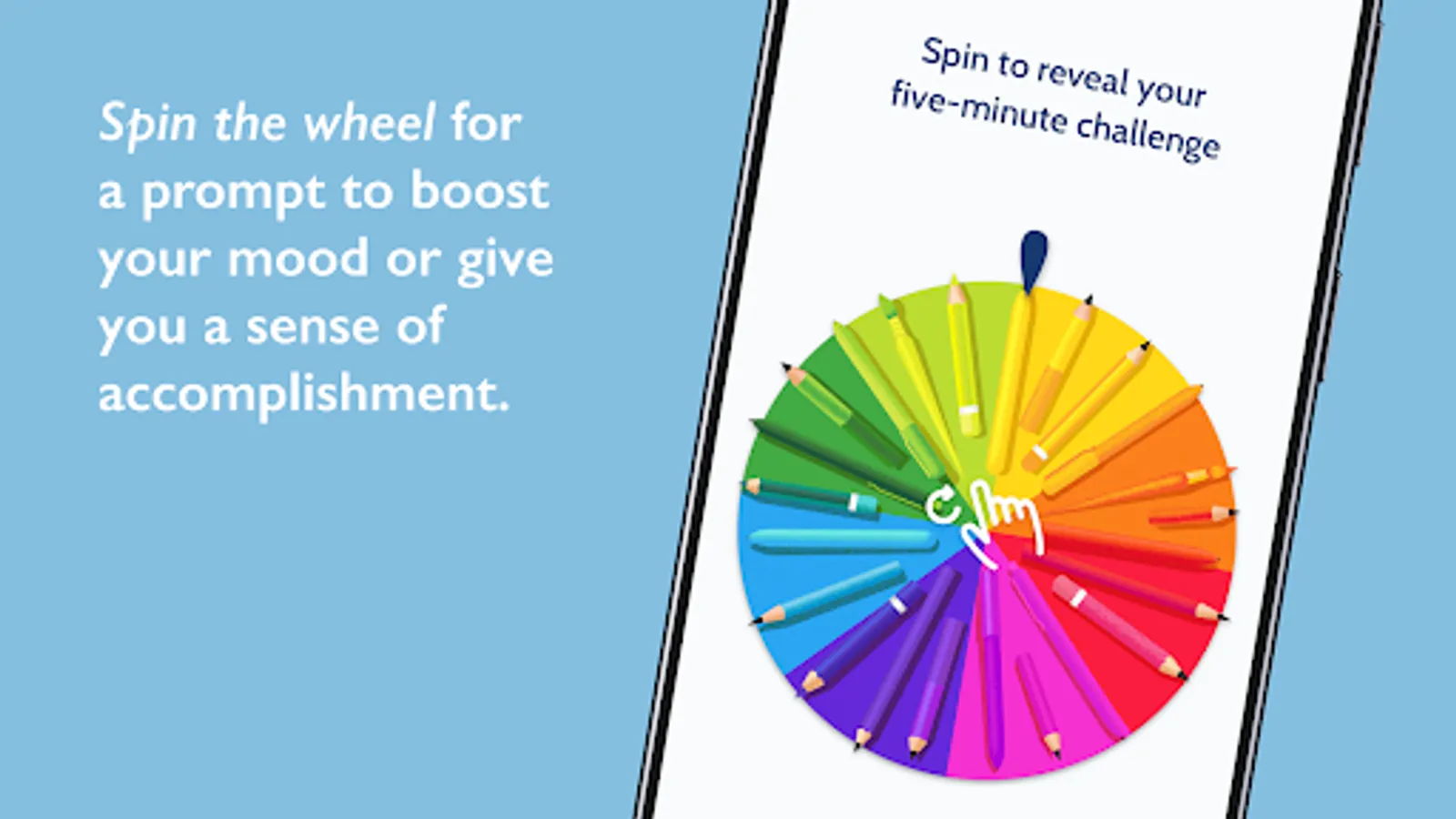Spin the Wheel for fun daily challenges to get a quick boost of happiness, energy, or creativity.