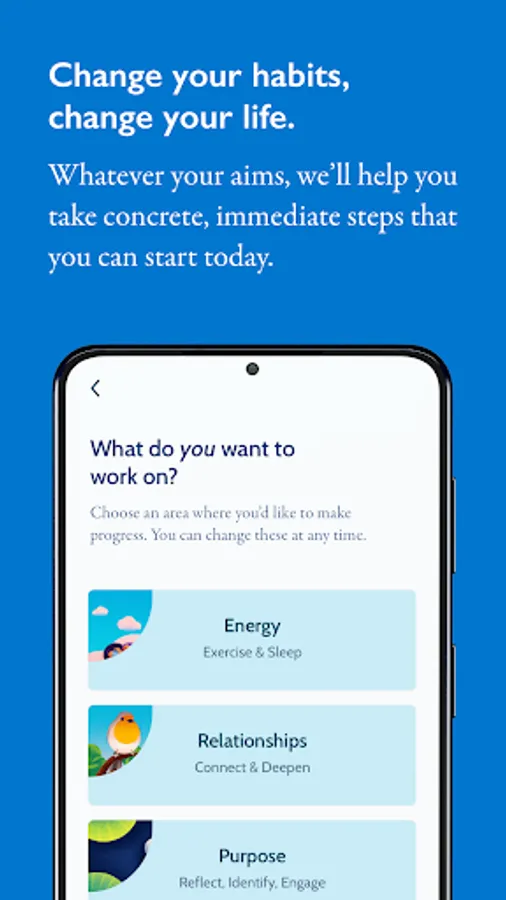 Schedule helpful reminders, track your progress, and continue to build more happiness habits. Even small steps make a big difference over time.