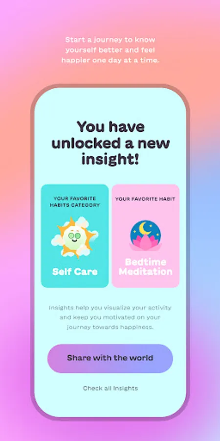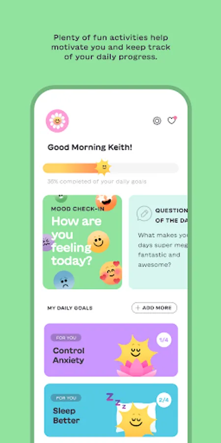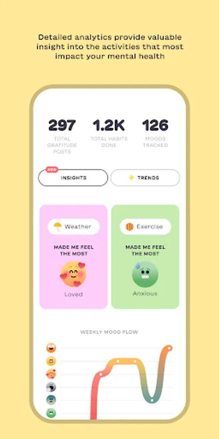 - Track your progress with a robust stats section that lets you see what types of things are contributing to your mental wellbeing
