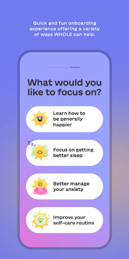 Whole was born from a community on Instagram known as The Happy Broadcast (@the_happy_broadcast). Since 2018, The Happy Broadcast has delivered positive news to a growing community of over 1 million people across the globe. The focus on positive news, delivered in an aesthetically pleasing format, has served to delight millions of people and spawned a movement to de-stigmatize issues of anxiety, depression and mental health. Over the years, research has confirmed the power of positivity, and Whole aims to help harness that power by becoming a personal trainer for your mental health, leveraging information, techniques, and activities that build a better and stronger mental state for users.