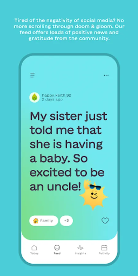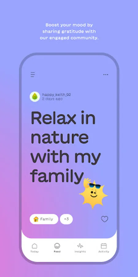 - Share and like thoughts of gratitude with a social community in our vertical scrolling “gratitude feed”