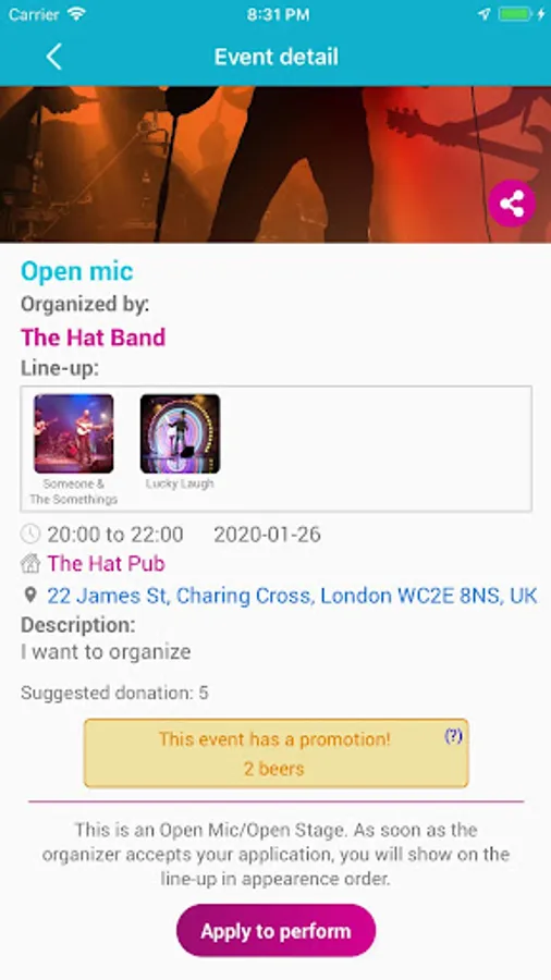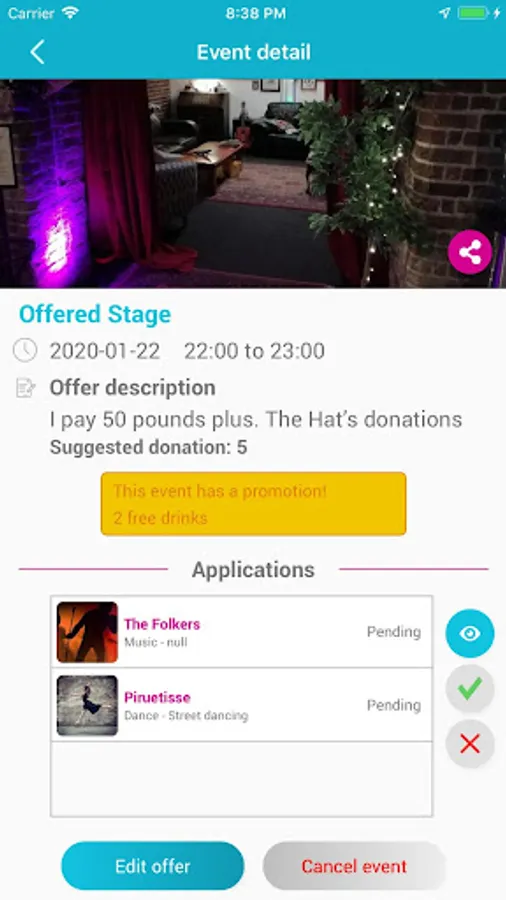 As a Venue, you can offer your stage for events and Open Mics in order to host new artists. You can encourage your customers to support adding promotions and that way you will get the best artists in town! The Hat will help you attracting new artists and customers.