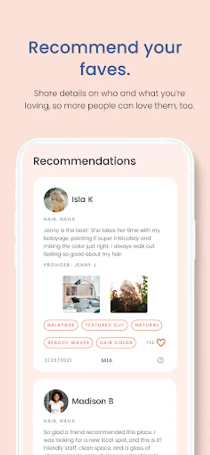 Find and share curated recommendations for beauty, health, fitness and wellness services from creators and friends you trust.