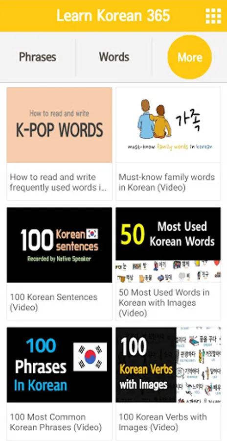 Learn Korean 365 is updated daily, with new sentences and words provided twice a day. The sentences and words you see in this app are all Koreans use every day. and you can listen to sentences and words recorded by Native Koreans.