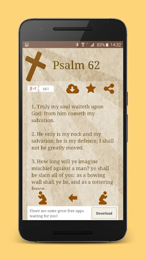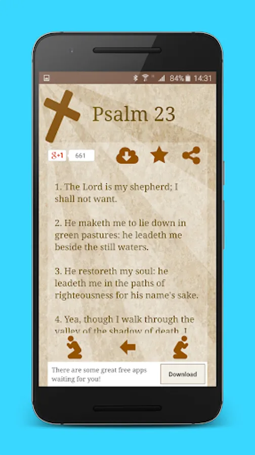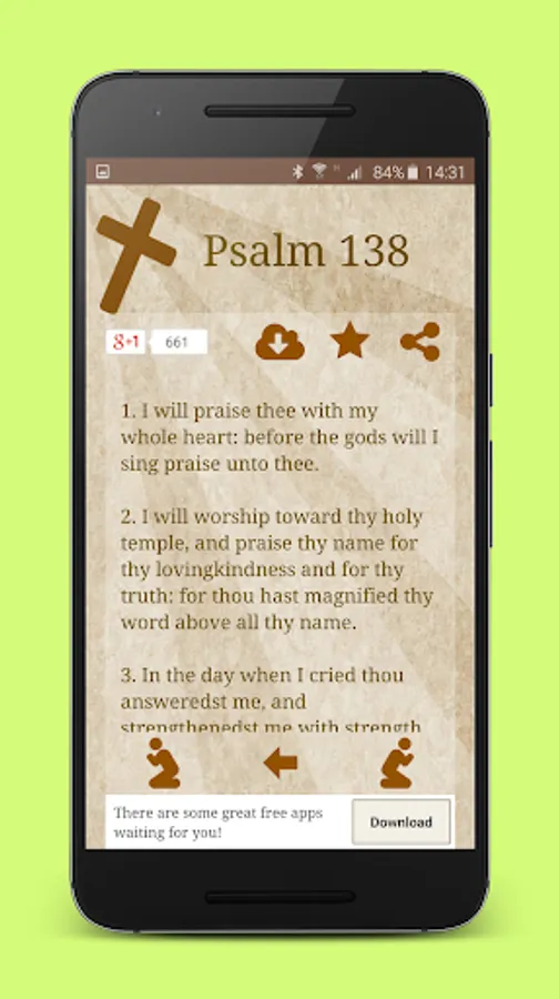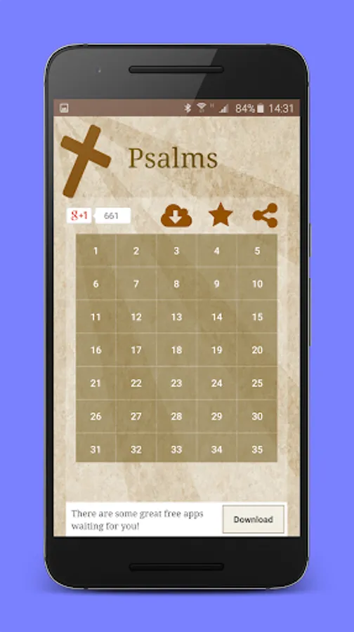 This free app contains all 150 psalms of the Bible, arranged in a small app, quick and easy to use.