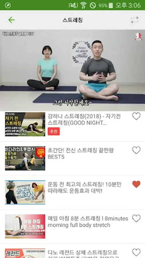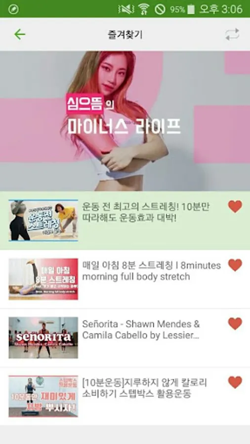 1.각 운동 카테고리별 프로그램중에서 미리 영상을 확인하며 마음에 드는 영상의 하트표시
