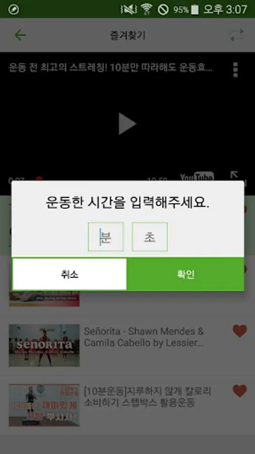2. 운동영상을 통해 수행한 시간을 입력하여 소모된 칼로리 산정