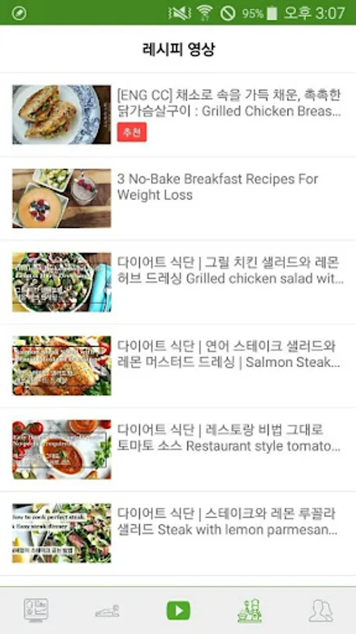 5.하루 중 한끼는 레시피 영상을 통해 건강식 섭취