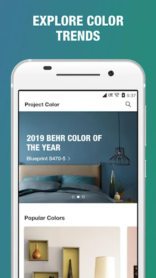 Looking for ideas? Use the homepage to scroll through popular colors and get recommendations based on the mood you want to set in your room.