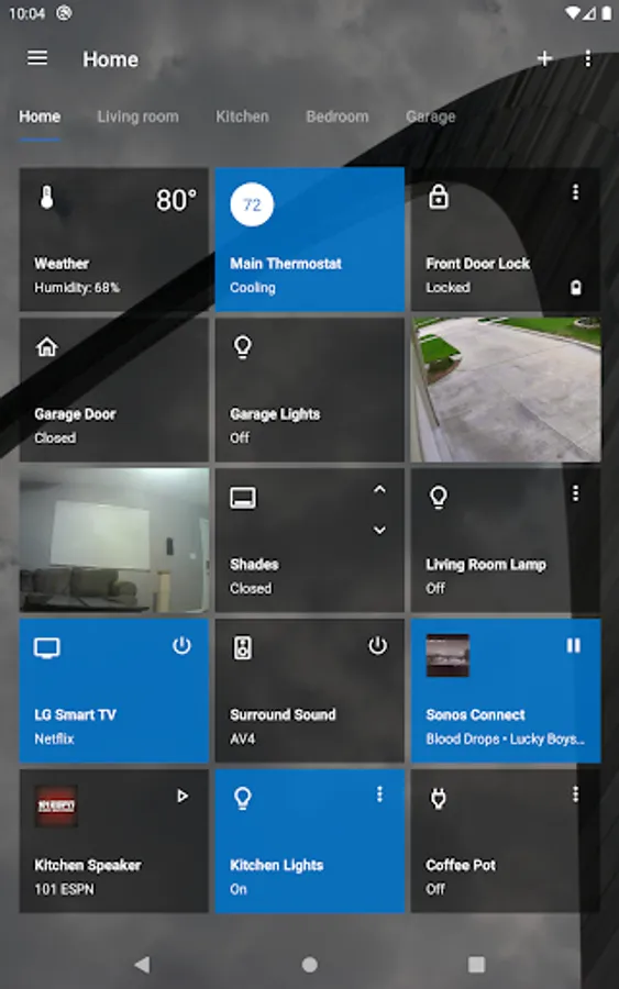 Control all of your home automation and AV devices from one app. Simply click the '+' button to begin adding your devices.