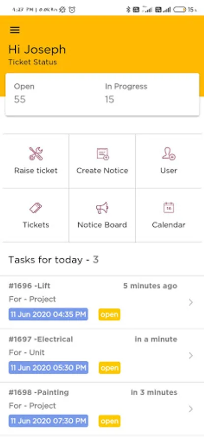 The app allows you to view and manage all tickets raised by residents and manage services provided by vendors in the building.