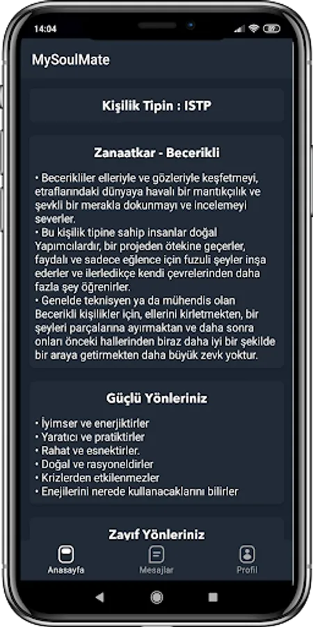You can also learn the characteristics of your character, your strengths and weaknesses, and in which percentile you are in the community with MySoulMate.