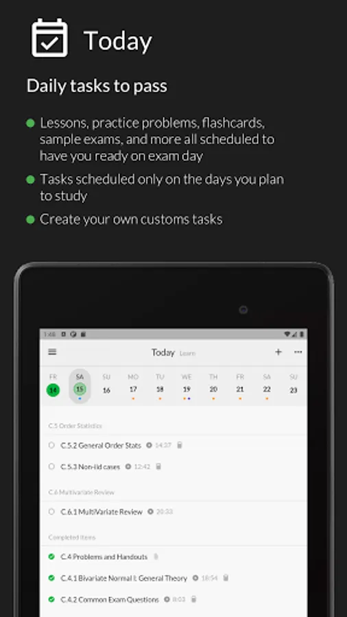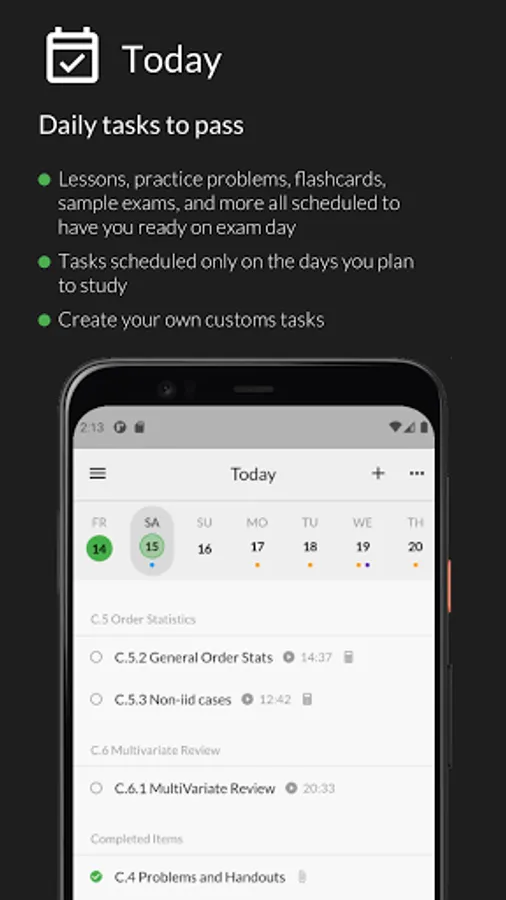- Lessons, practice problems, flashcards, sample exams, and more all scheduled to have you ready on exam day