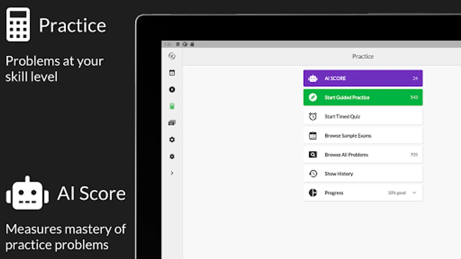 - AI Score measures your mastery of practice problems