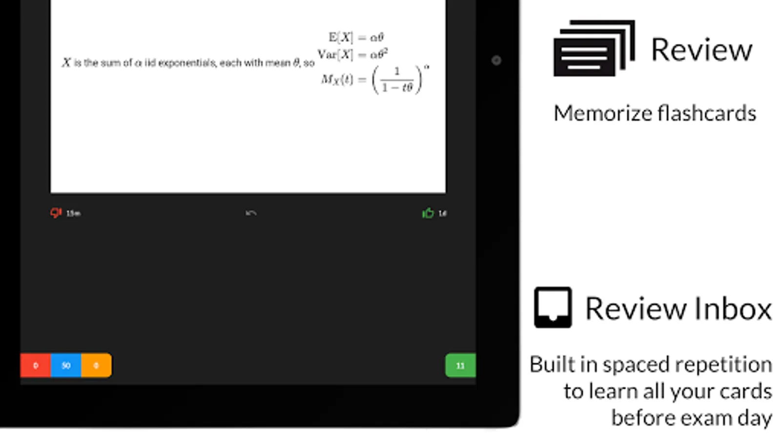 - Your review inbox will make sure you review each card just enough to help you memorize every card by exam day