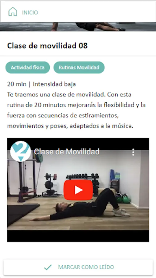 In some cases, within the services offered from the application, the virtual Gym and Classroom will be presented so that you can see and attend virtual classes. There will also be access to calendars on which to book your appointment for physiotherapy sessions.