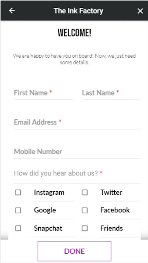 Fast booking mobile application for The Ink Factory Studio. Only used for Internal management purposes.
