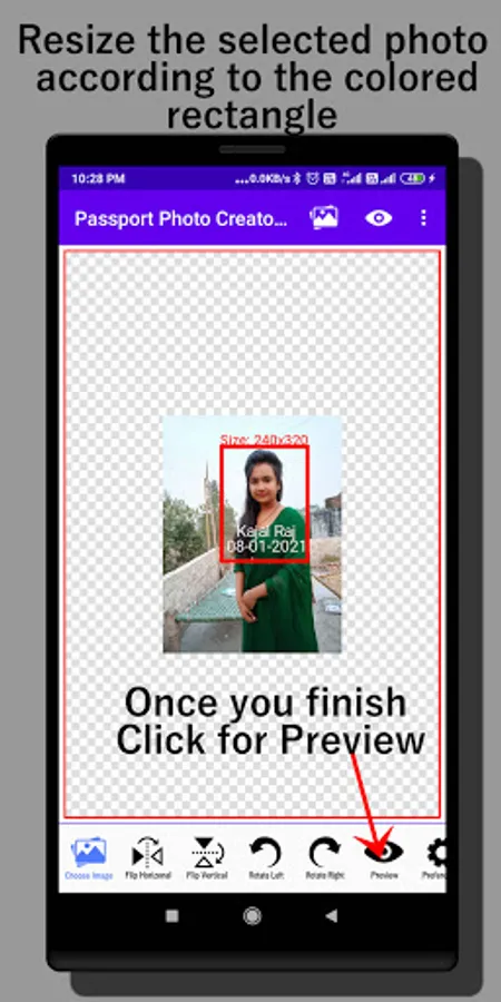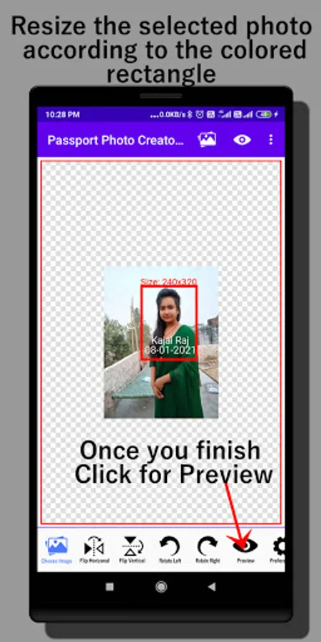 Whenever we fill an online form, we have to upload a passport photo and signature. And we have many problems regarding the size of the passport photo. Passport Photo Creator Free is an application that lets you create photos according to your size. Just take a photo from your mobile with a simple background and go to the application and make a passport photo according to your desired size.