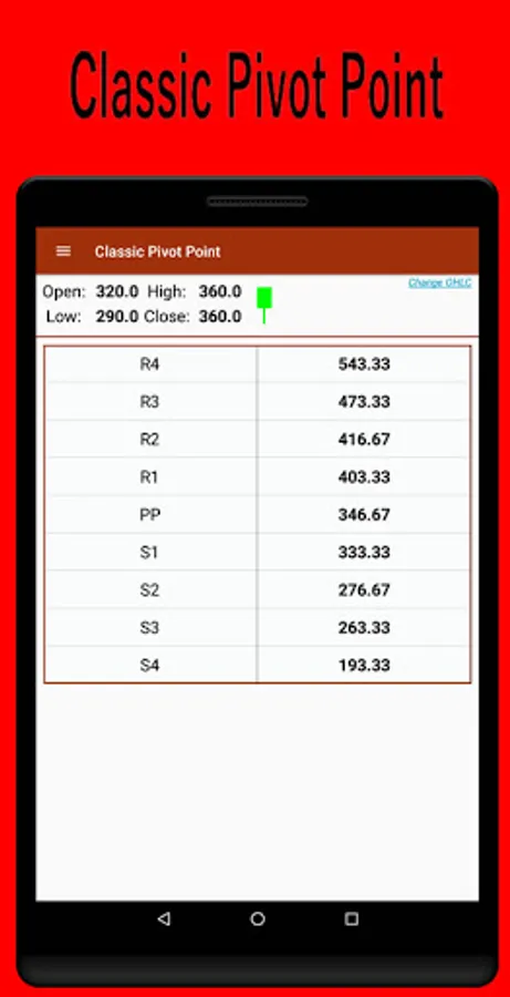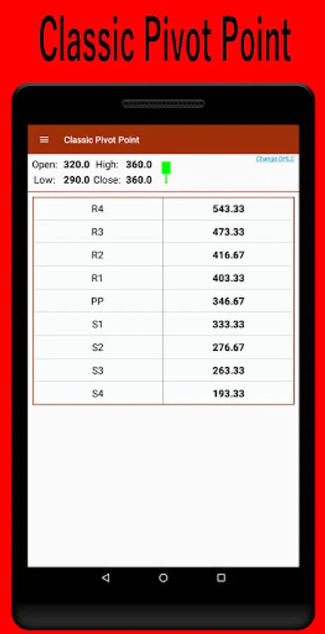 Pivot Point Calculator Free, is a easy application to calculate resistance and support levels, by enter open, high, low and close.