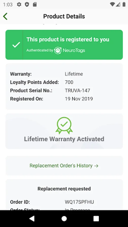 2) Tap the "Scan" option and scan the warranty QR code present in the product package.