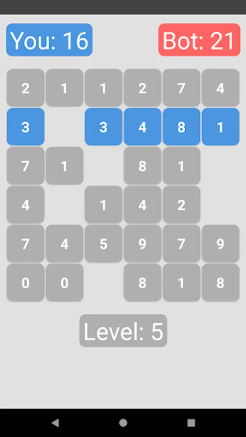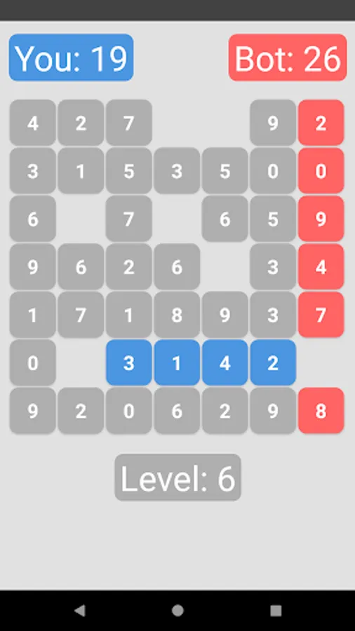 Before you a mathematical puzzle game with simple rules and fascinating gameplay. Your task is to score more points than your opponent. To do this, you need to choose a tactic - you can simply choose the maximum, or you can impose bad moves on the opponent. Select a number in the row, and the bot will select the number in the column in which the previous number was located. Clean the row and column where your number is located to complete the game.