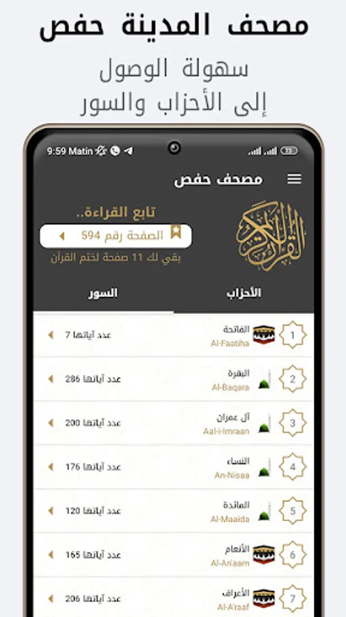 Informing the reader of the page he reached and how much is left for him to seal the Qur’an when opening the application